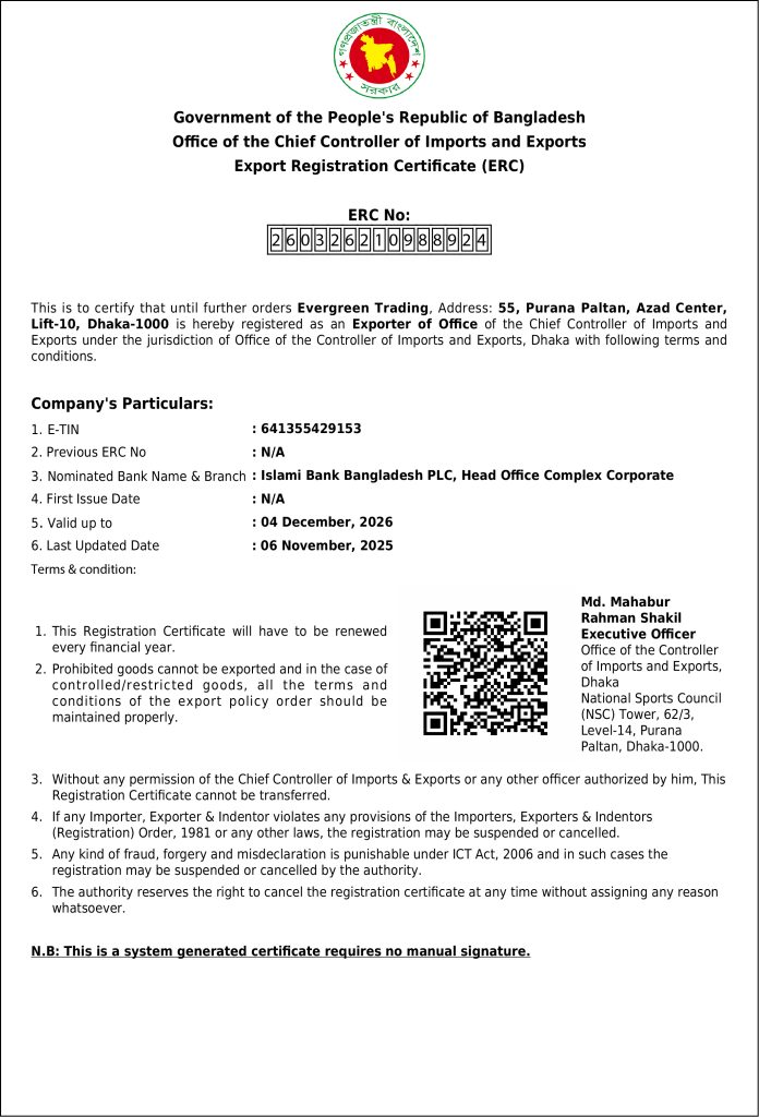 At Ever Green Trading, we believe in fostering strong, long-term relationships with our clients. Whether you’re looking for high-quality products from Bangladesh or seeking a reliable export partner, we are here to meet your needs.